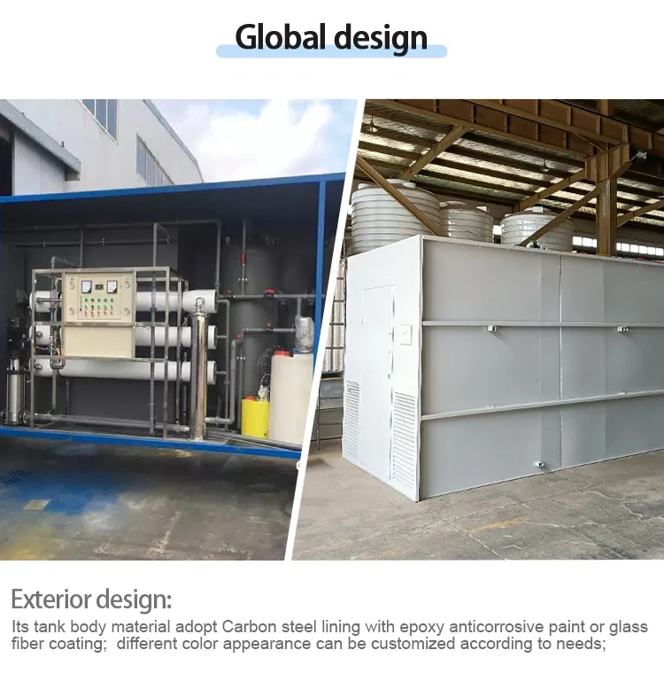 التصميم الخارجي: يتكون جسم الخزان من فولاذ كربوني مبطَّن بطلاء إيبوكسي مقاوم للتآكل أو مغلفٍ بألياف زجاجية؛ ويمكن تخصيص ألوان مختلفة للمظهر الخارجي وفقًا لمتطلبات العميل؛