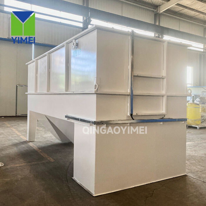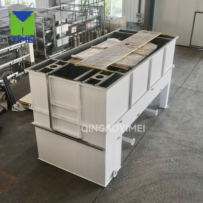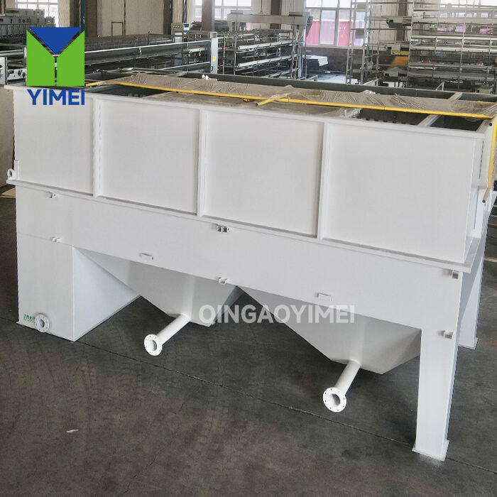 يتم تركيب العديد من الأنابيب المائلة الكثيفة أو اللوحات المائلة في منطقة إعادة الترسيب، بحيث تترسب الشوائب العالقة في الماء داخل اللوحة المائلة أو الأنبوب المائل. ويتدفق الماء لأعلى عبر اللوحة المائلة أو الأنبوب المائل، بينما تنزل الطمي والمخلفات المنفصلة إلى قاع الحوض تحت تأثير الجاذبية، وتُفرغ بشكل مركّز.